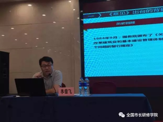 开班式后,李雪飞副处长为培训班讲授第一课,他从《意见》出台的背景情况,建筑业30多年来取得的成绩,改革的主要思路以及改革的主要政策措施四个方面,对建筑业改革七个方面20条措施进行了解读。