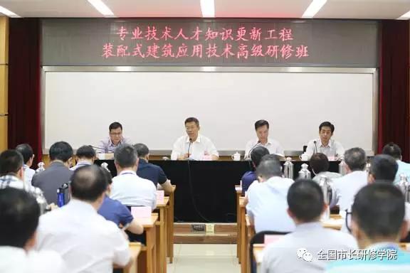 8月15日上午,由住房城乡建设部和人力资源社会保障部联合举办,全国市长研修学院(住房和城乡建设部干部学院)承办的“装配式建筑应用技术高级研修班”在我院市长之家宾馆开班。学院逄宗展副院长、住房城乡建设部人事司干部教育处何志方处长、建筑节能与科技司装配式建筑与墙材革新处何任飞处长、学院专业技术人员继续教育培训部王军主任参加开班式。