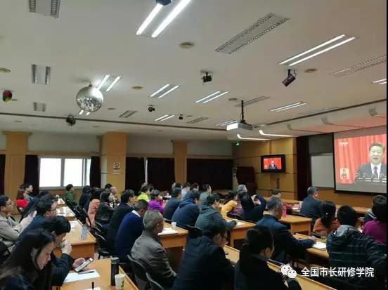 10月18日上午9点,举世瞩目党的十九大开幕会在人民大会堂胜利举行。学院党委组织全体教职工和党校学员、市长之家宾馆员工,在大教室集中观看这场伟大盛事的电视直播。