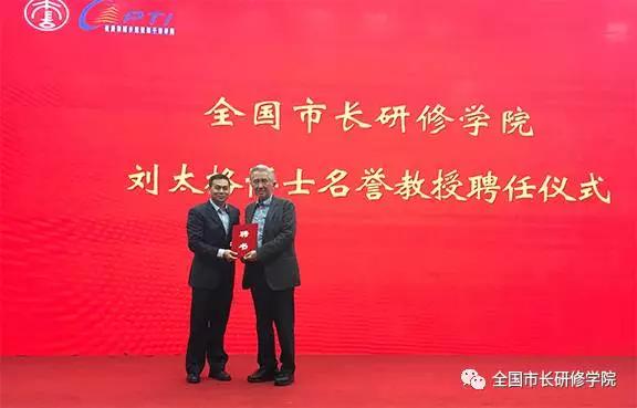 11月21日,全国市长研修学院(住房和城乡建设部干部学院)聘请“新加坡规划之父”刘太格博士为名誉教授,并举行了简短而隆重的聘任仪式。全国市长研修学院党委副书记、副院长宋友春向刘太格博士颁发了名誉教授聘书,副院长逄宗展主持了聘任仪式。