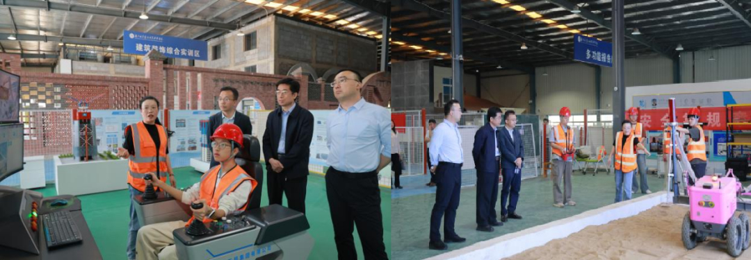 在湖北城市建设职业技术学院,调研组参观了湖北建院虚拟仿真实训基地、国家建筑实训基地、装配式实训基地、创新创业中心等,深入了解了湖北建院在教学改革、产教融合、培训服务等方面取得的成果。