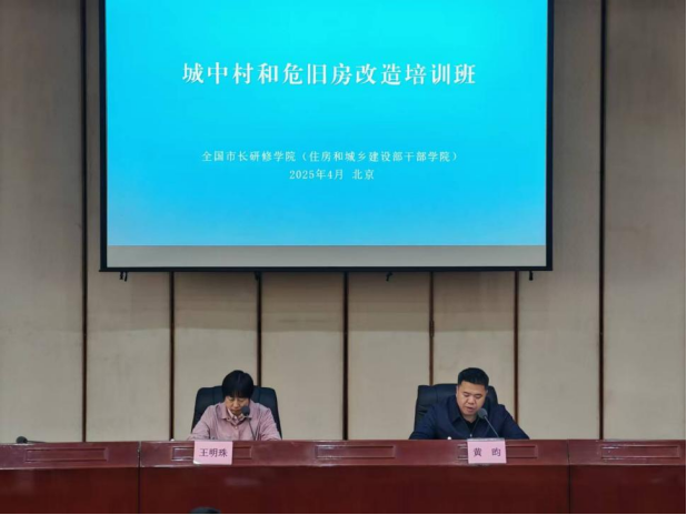 4月22日至25日由全国市长研修学院(住房和城乡建设部干部学院)主办的“城中村和危旧房改造培训班”在北京成功举办。23日上午,培训班举行开班式,学院纪委书记黄昀出席,房地产与住房保障培训部副主任王明珠主持。