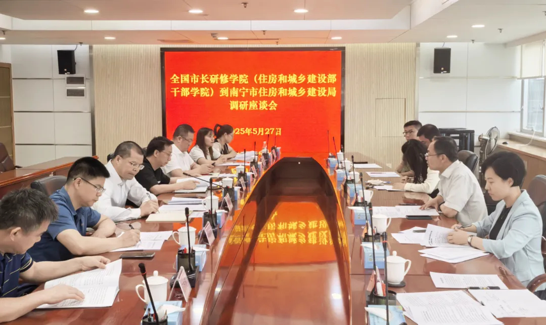 5月28日,课题组赴广西壮族自治区住房和城乡建设厅座谈,围绕加强东盟国家城乡建设发展培训、行业人才培养规划、城中村改造等工作进行交流。杨栋对学院课题组的到来表示欢迎,介绍了近年来自治区住建厅在加强与东盟国家合作方面的相关工作与贡献;组织开展住建行业各类培训工作,不断充实人才队伍;积极采取有效措施,有力推进城中村改造等工作。自治区住建厅人事教育处、建筑市场监管处、住房保障处、城市更新处、培训中心、广西建设职业技术学院有关负责同志参加座谈并介绍相关情况。陈勇介绍了学院有关情况和此次赴桂调研目的,并表示,近年来,广西在与东盟国家住房城乡建设行业交流、人才队伍建设和城中村改造等工作中取得了丰硕成果,形成了好的经验做法,值得借鉴和推广。希望双方以现有成果为基础,进一步加强沟通协作,持续拓展与东盟国家在住建领域的培训交流,提升住建人才队伍的专业素质和综合能力。