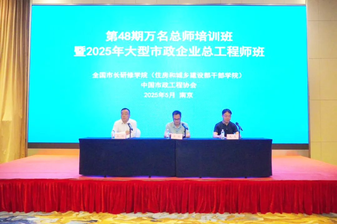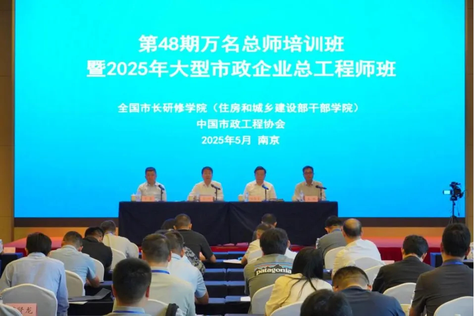 2025年5月26日至29日,由全国市长研修学院(住房和城乡建设部干部学院)、中国市政工程协会联合举办的第48期万名总师培训班暨2025年大型市政企业总工程师培训班在南京市成功举办,来自全国大型市政企业总工程师、总经理等120余人参加培训。