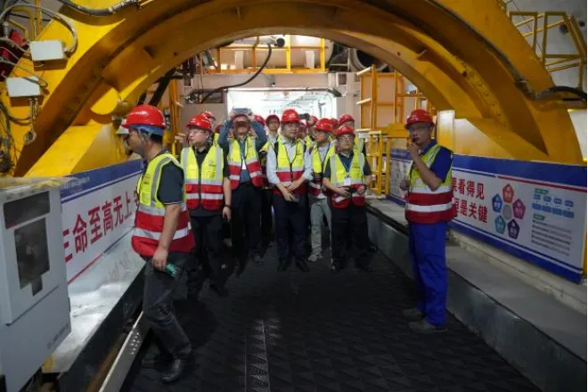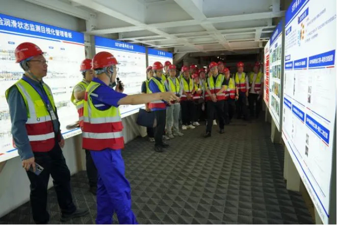5月28日下午,培训班学员参观南京地铁4号线二期工程过江隧道段,开展现场教学活动。现场聆听中铁十四局项目负责同志介绍盾构隧道关键控制技术、饱和潜水技术、刀盘焊接机器人、同步退拼技术、同步双液注浆技术等先进技术,学员们表示对国之重器大盾构有了更直观的认知,纷纷表示对智能建造有了更深层次的理解。