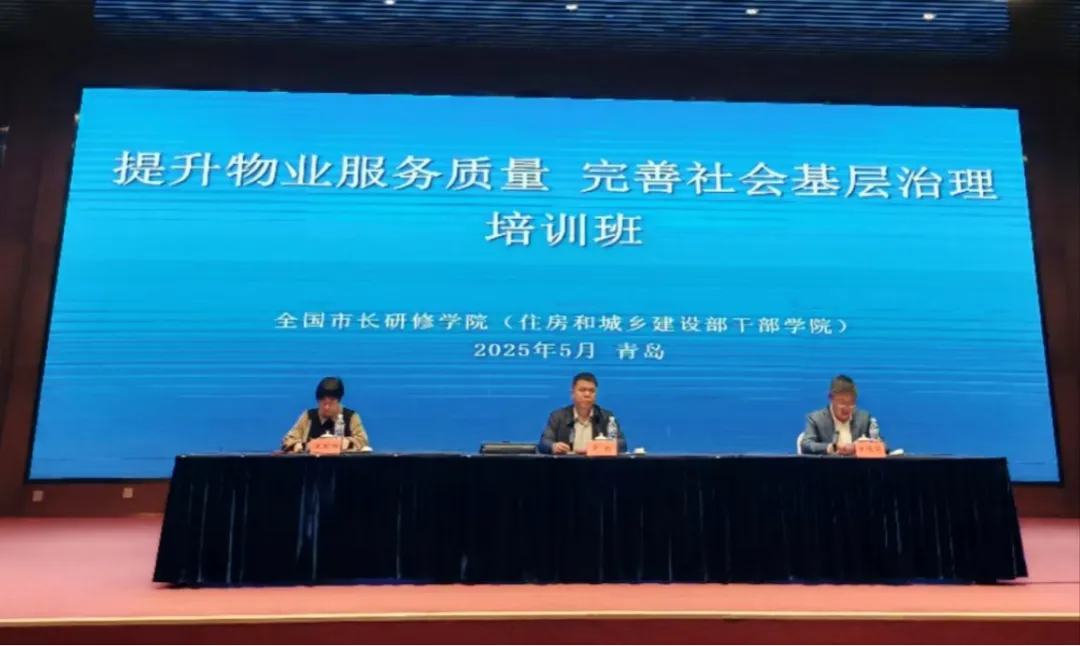 2025年5月21日至23日由全国市长研修学院(住房和城乡建设部干部学院)主办的“提升物业服务质量 完善社会基层治理培训班”在青岛成功举办。21日上午,培训班举行开班式,学院纪委书记黄昀,青岛市城市管理局党组成员、副局长王博彤出席开班式,学院房地产与住房保障培训部副主任王明珠主持开班式。