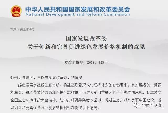 7月2日,国家发展改革委发布的《关于创新和完善促进绿色发展价格机制的意见》,聚焦污水处理、垃圾处理、节水、节能环保四方面。