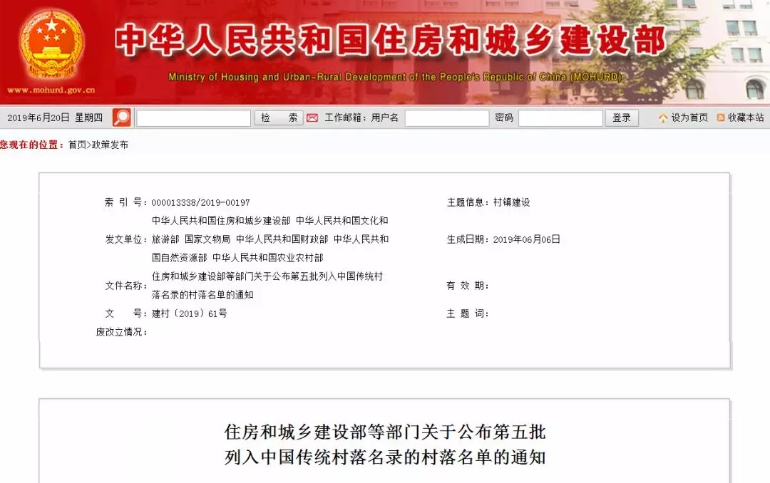 住房和城乡建设部等部门公布第五批列入中国传统村落名录的村落名单