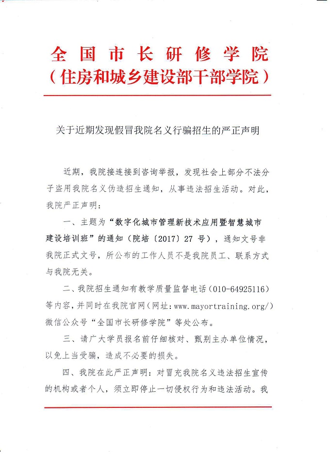 我院严正声明 |发现有不明单位盗用我院之名举办培训班