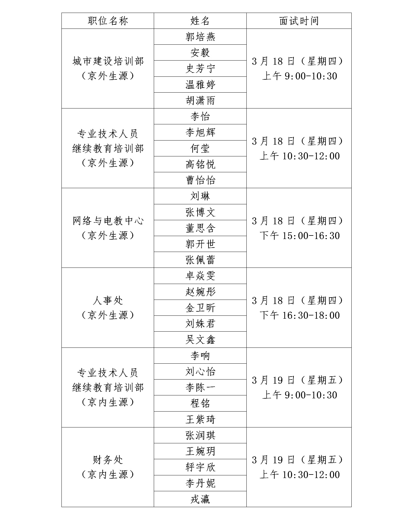 面试时间定于 2021年3月18日-19日举行,具体时间见面试名单。