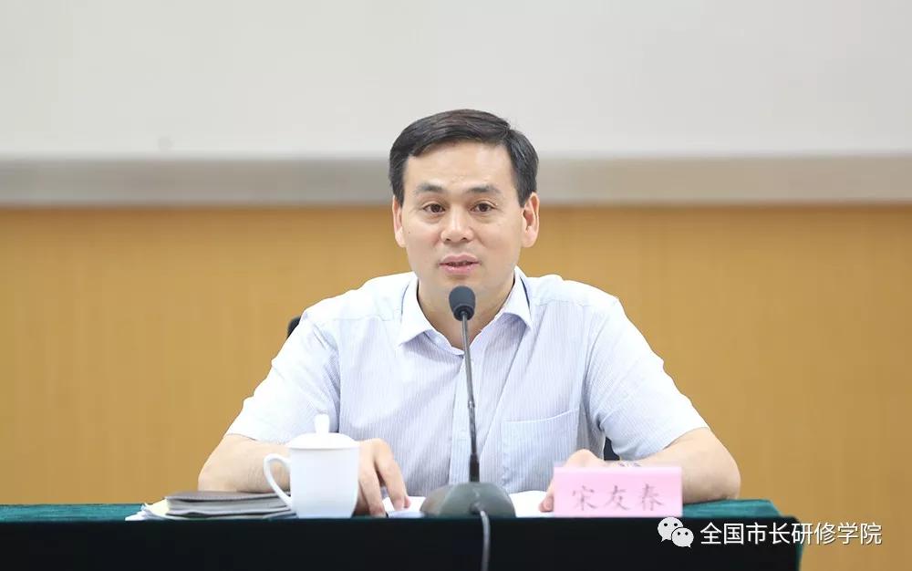全国市长研修学院副院长兼党委副书记宋友春主持座谈会