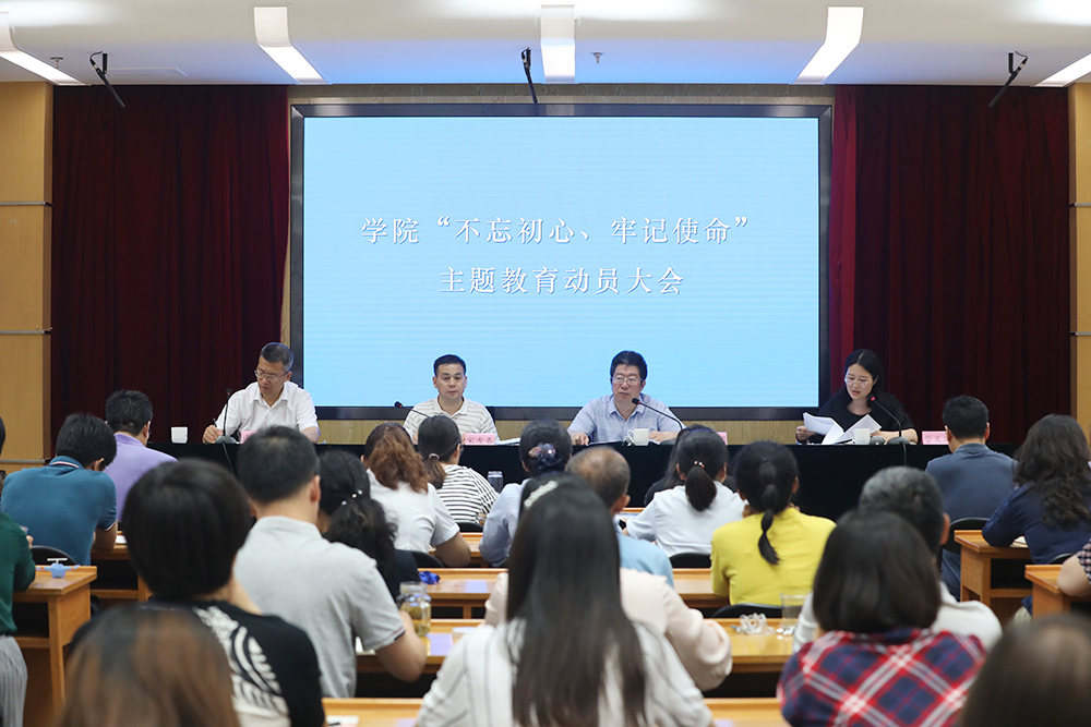 党委副书记、院长宋友春同志进行了动员讲话,他提出三点要求,一要充分认识开展主题教育的重大意义。全体党员干部要充分认识开展这次主题教育的重大政治意义、实践意义、历史意义、时代意义,充分认清开展这次主题教育的必要性、重要性,不断增强参加这次主题教育的思想自觉、政治自觉和行动自觉。二要准确把握主题教育的目标要求。准确把握“深入学习贯彻新时代中国特色社会主义思想、锤炼忠诚干净担当的政治品格、团结带领全国各族人民为实现伟大梦想共同奋斗”的根本任务;准确把握“守初心、担使命,找差距、抓落实”的总要求;准确把握“实现理论学习有收获、思想政治受洗礼、干事创业敢担当、为民服务解难题、清正廉洁作表率”的目标。三要紧密结合实际,努力取得最好成效。加强组织领导,成立学院主题教育领导小组;严密组织实施,把学习教育、调查研究、检视问题、整改落实贯穿主题教育全过程;以好的作风开展主题教育,坚决防止形式主义、官僚主义。